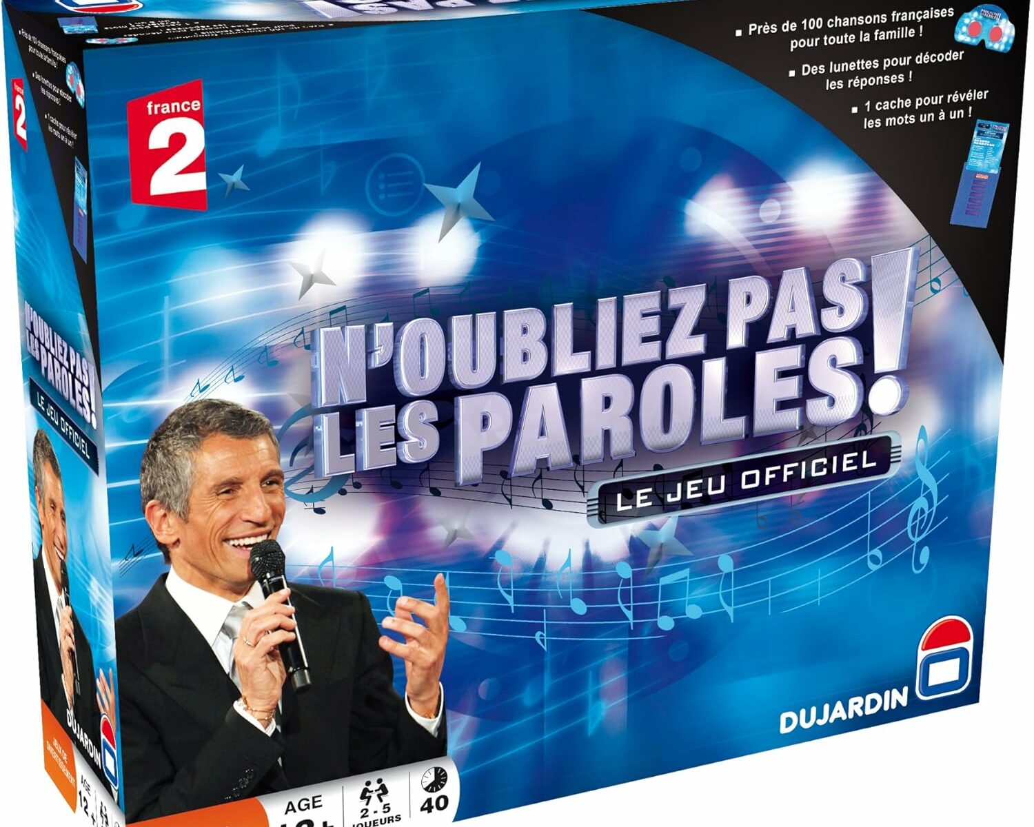 Retrouvez le célèbre jeu télévisé en version jeu de société avec cette boîte N’oubliez pas les paroles de DUJARDIN. En famille ou entre amis, relevez les défis musicaux comme si vous étiez sur le plateau de Nagui.