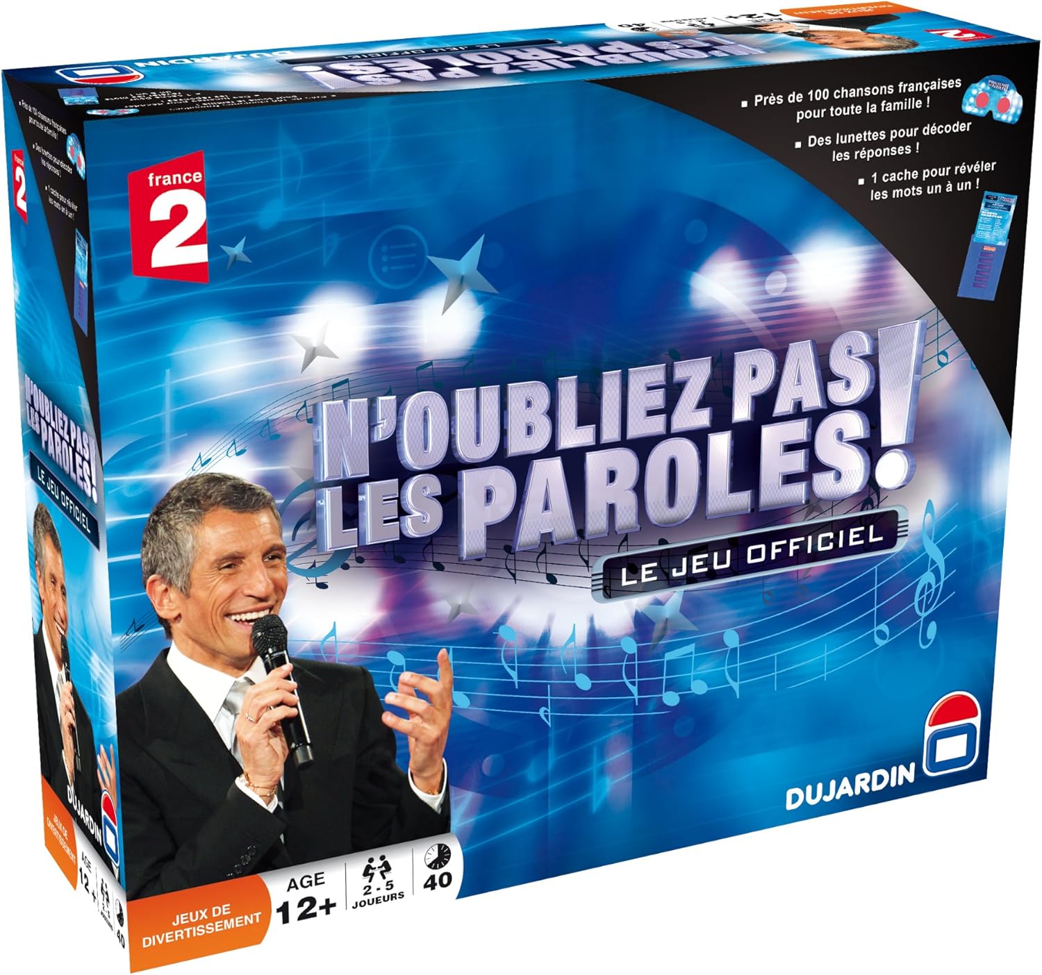 Retrouvez le célèbre jeu télévisé en version jeu de société avec cette boîte N’oubliez pas les paroles de DUJARDIN. En famille ou entre amis, relevez les défis musicaux comme si vous étiez sur le plateau de Nagui.